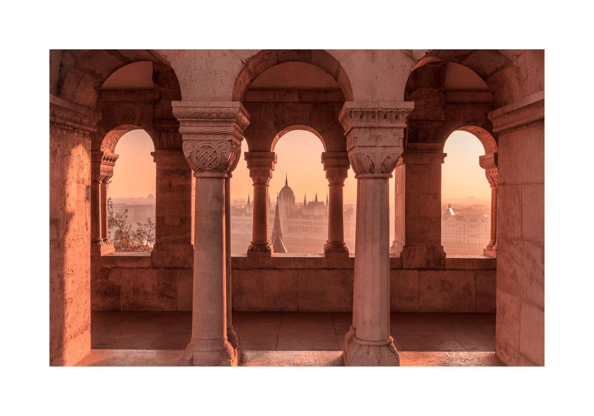À partir de $21.60Magnifique affiche d'architecture avec une superbe vue en arrière-plan du Parlement de Budapest, que l'on peut voir à travers les piliers du Bastion des Pêcheurs. C'est l'une des attractions touristiques les plus importantes à partir de laquelle vous pourrez admirer le panorama unique de Budapest, directement depuis le belvédère néo-roman construit entre 1895 et 1902.