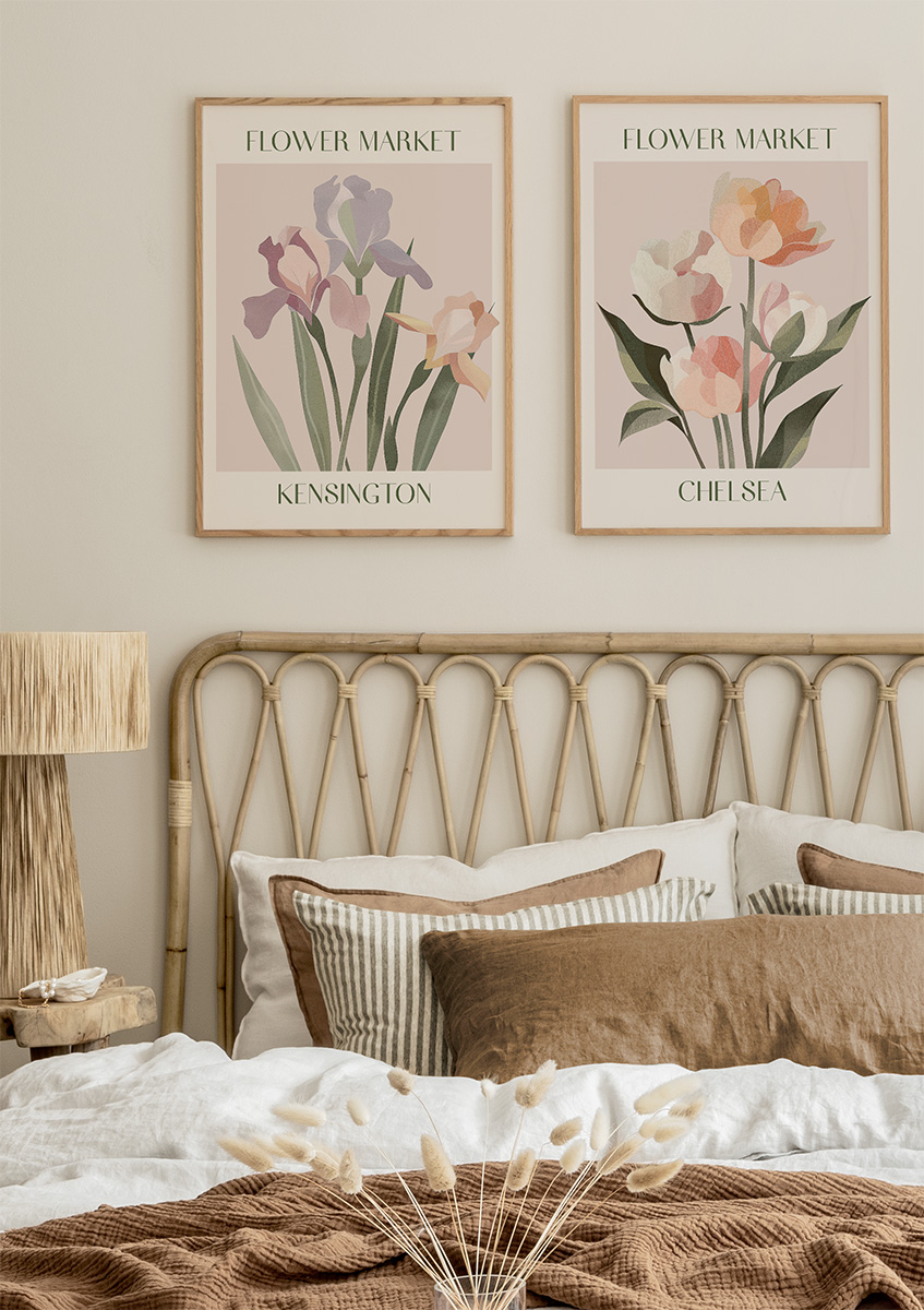 À partir de $31.77Deux posters présentant de magnifiques illustrations florales aux couleurs pastel douces. Le poster Kensington présente des fleurs en violet, rose et jaune, tandis que le poster Chelsea affiche des fleurs dans des nuances pêche, crème et rose.