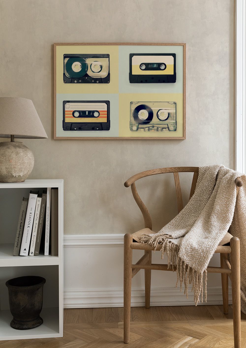 Plongez dans l'univers rétro avec cette affiche de cassettes vintage aux couleurs noir et beige, parfaite pour ajouter une touche nostalgique à votre décor.