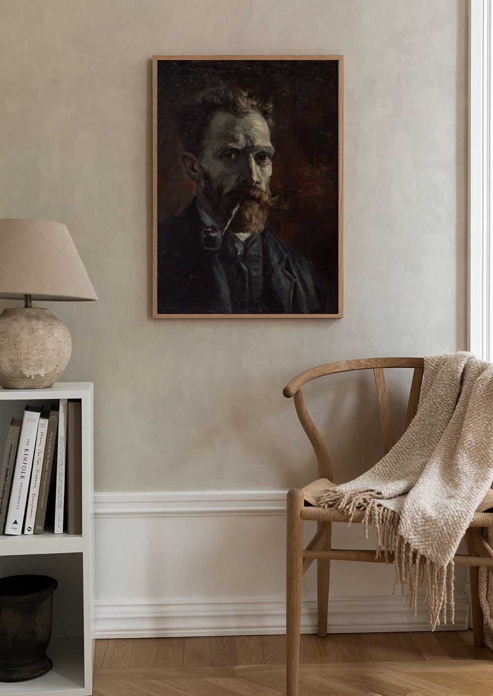 Une affiche de Van Gogh avec son autoportrait à la pipe, parfaite pour ajouter une touche artistique à votre intérieur.