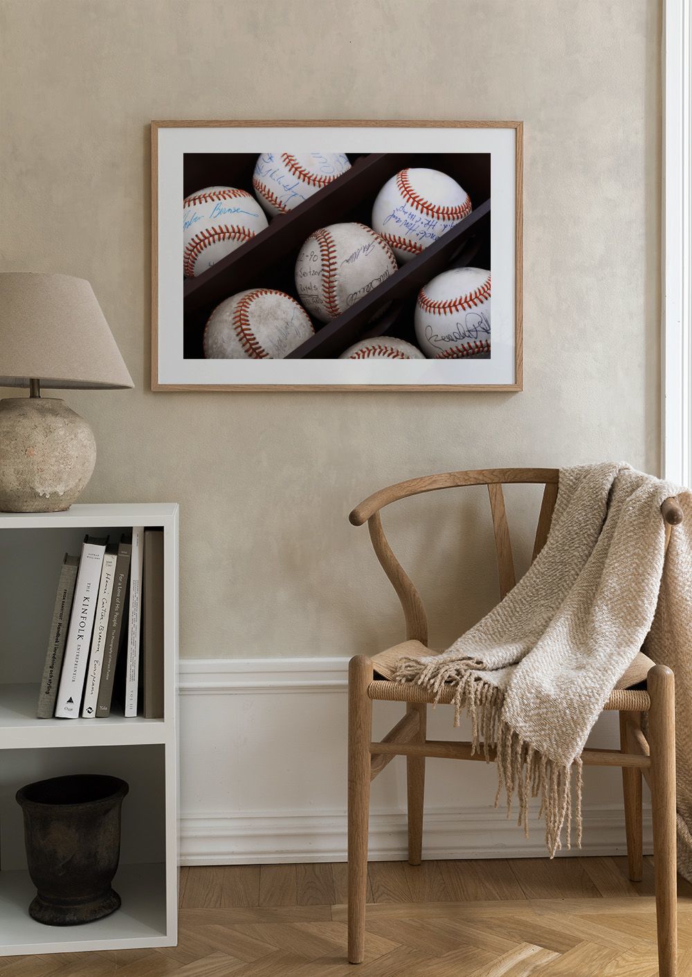 Affichez votre passion pour le baseball avec cette affiche de balles signées dans une vitrine en bois.
