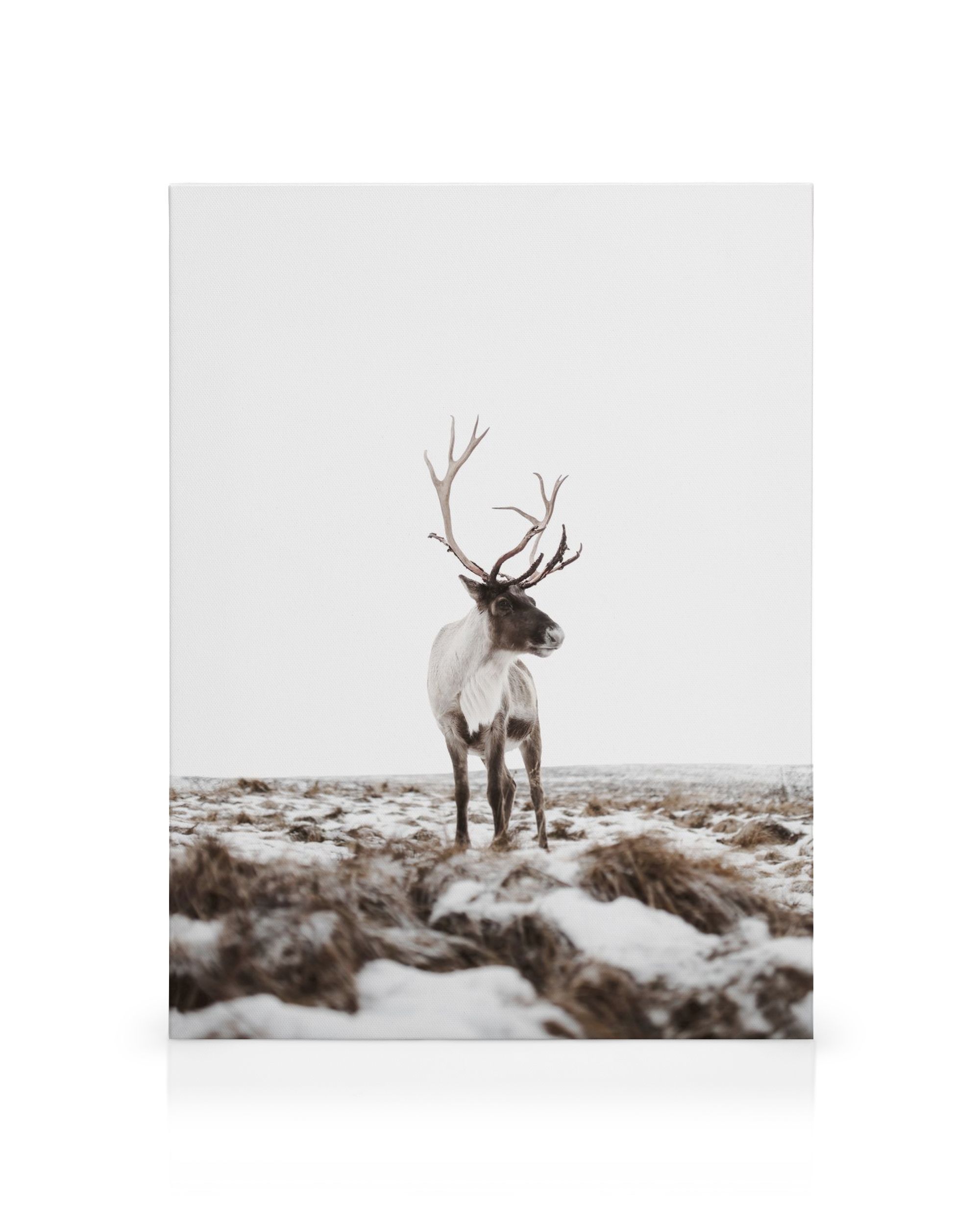 À partir de $69.13Superbe toile capturant un renne blanc et marron se tenant dans la neige sur un champ herbeux, ses grands bois se détachant sur un fond hivernal blanc. Parfait pour votre décoration murale.