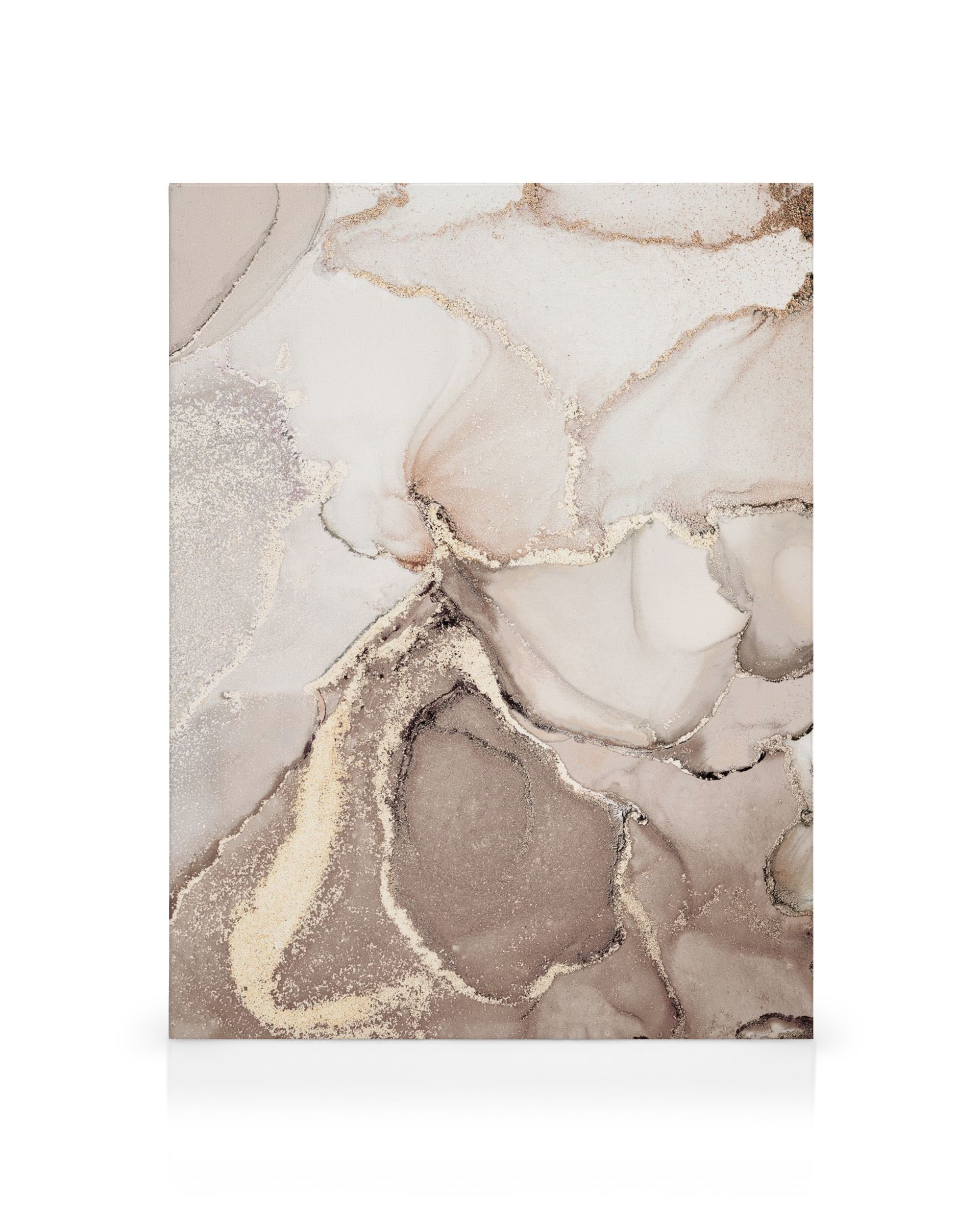 Abstract shapes in beige, white, and grey with gold lines, resembling marble or ink in water. White background with a smooth, glossy texture.