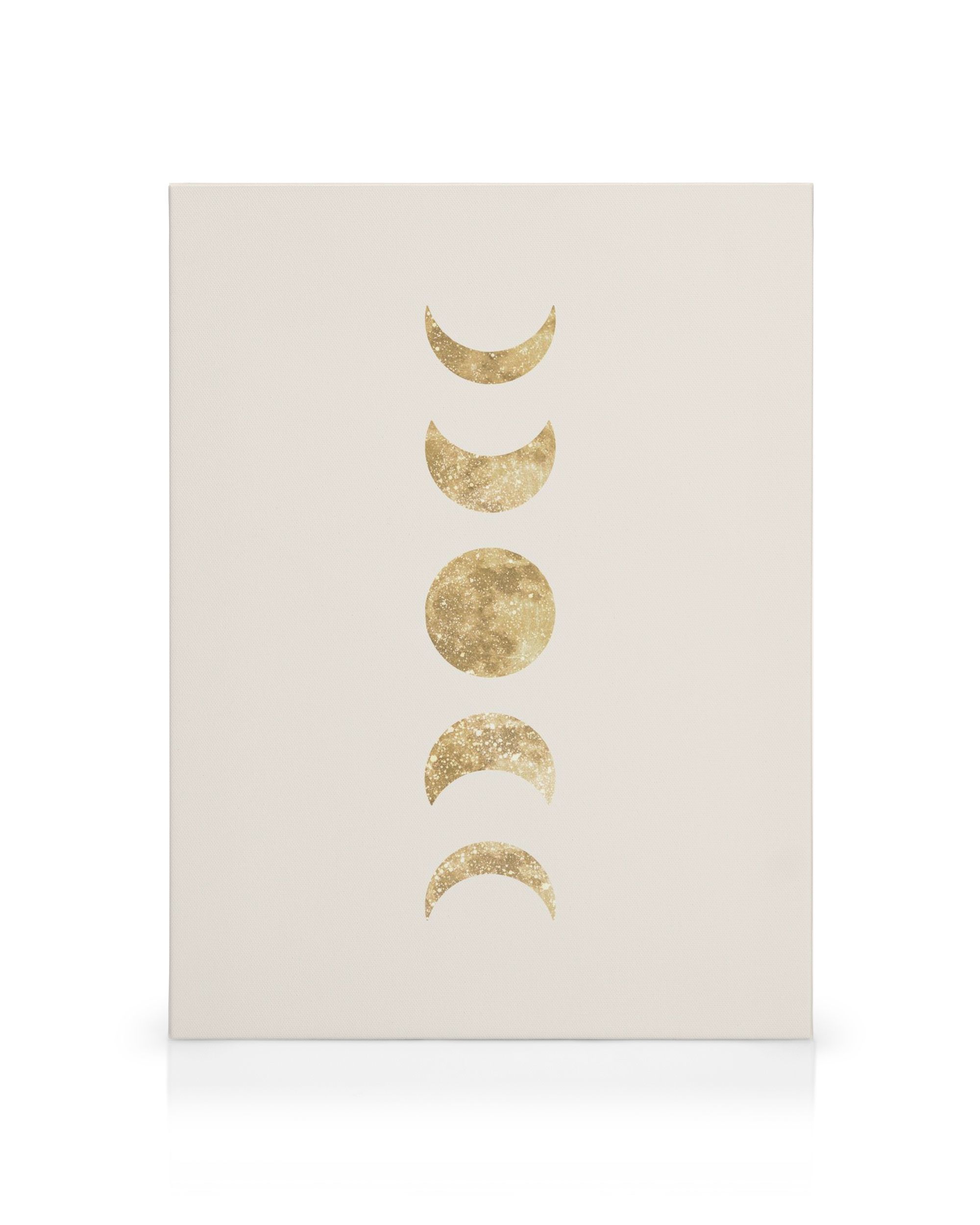 From $21.60Four gold-coloured moon phases on a white background, aligned vertically: crescent, half, full, and crescent moon. The texture appears speckled or glittery.