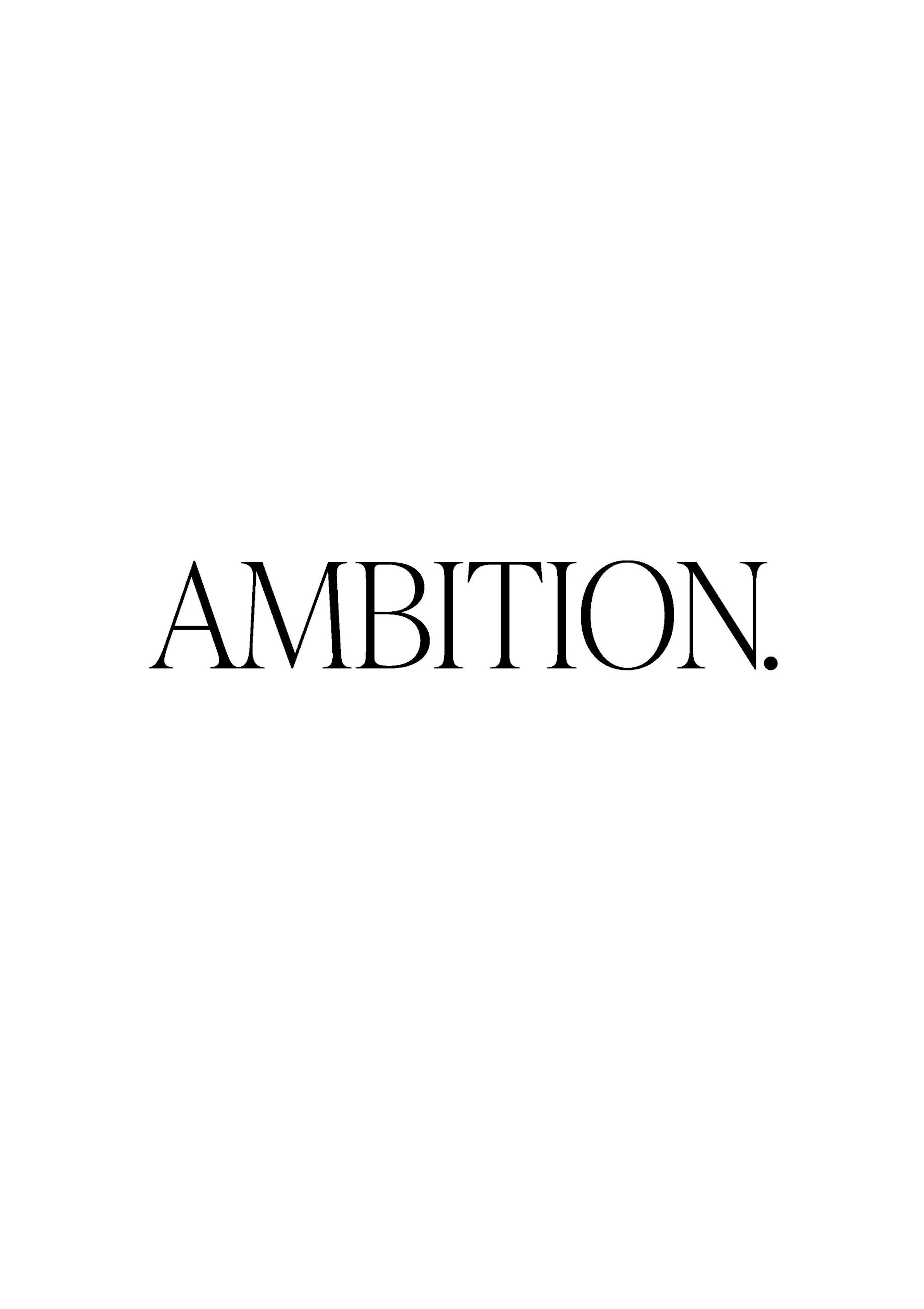 A simple black and white print with the word "AMBITION." This motivational wall art is perfect for your gallery wall.