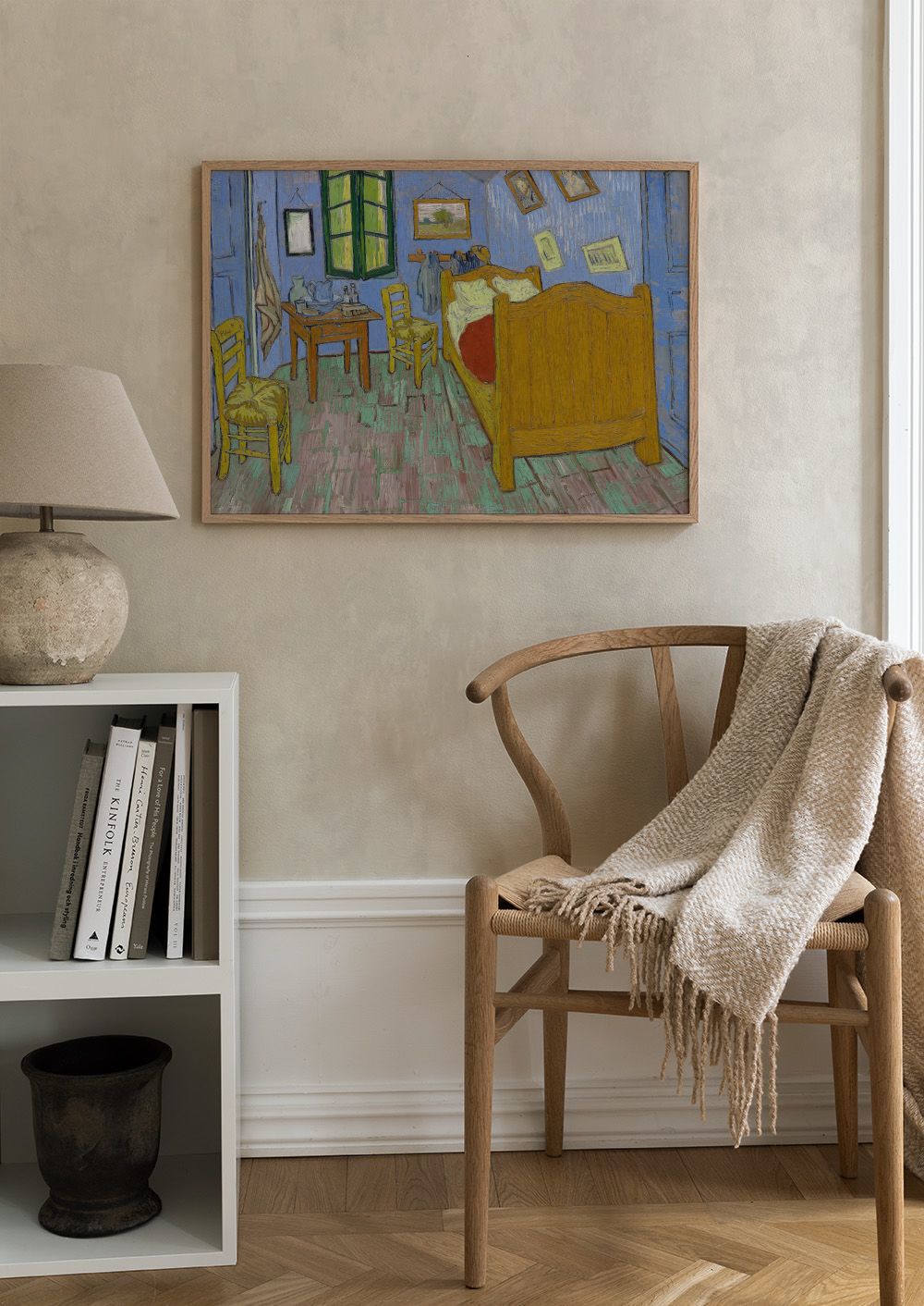 From $69.13A print of Van Gogh's famous painting "Bedroom in Arles". The print shows a room with blue walls, a yellow bed, two chairs, and a wooden table. Bright colours and rough textures give this wall art a classic look.