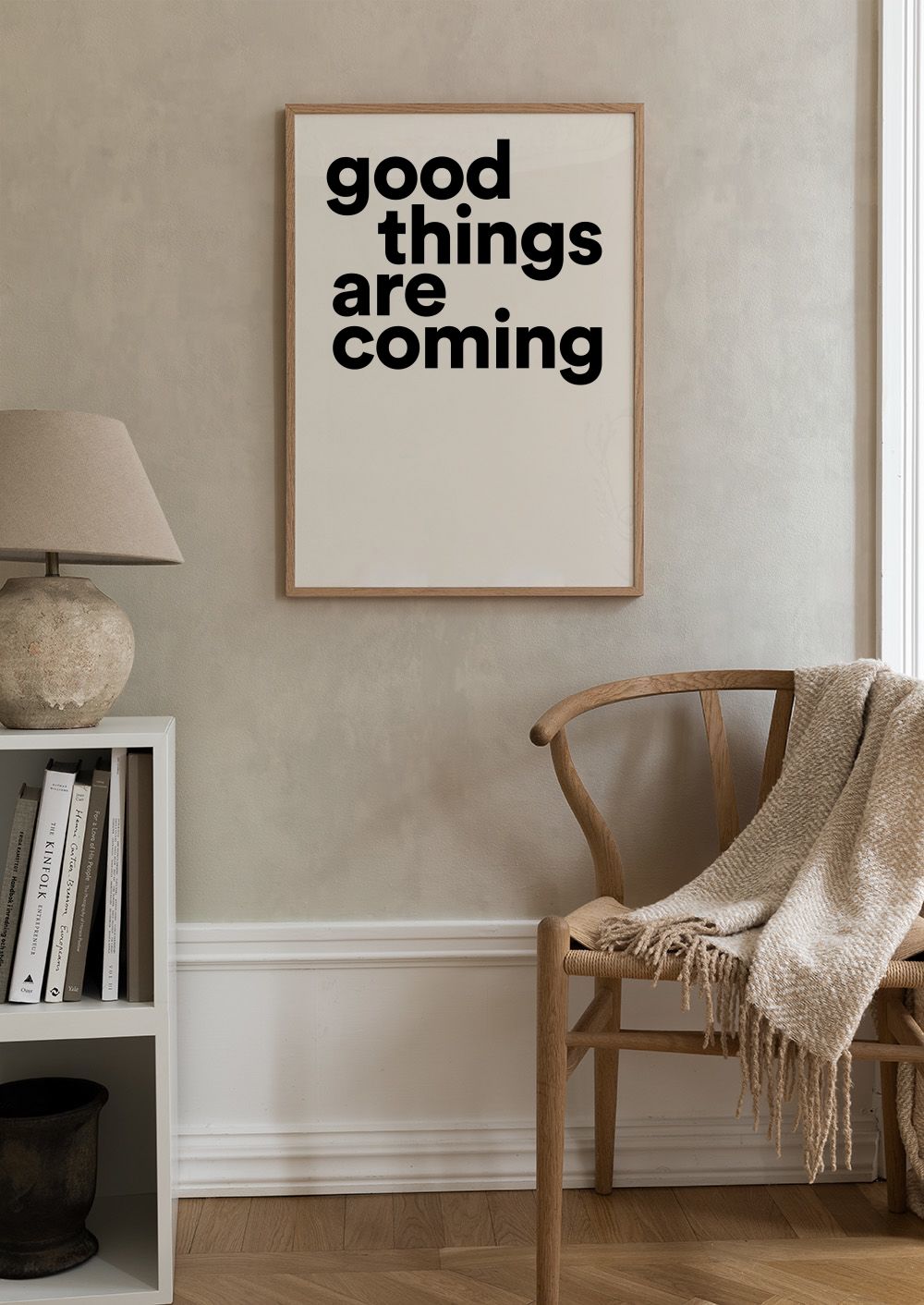 From $21.60A motivational print with black text that says "Good Things are Coming" on a light beige background. Perfect wall art to brighten up your home.