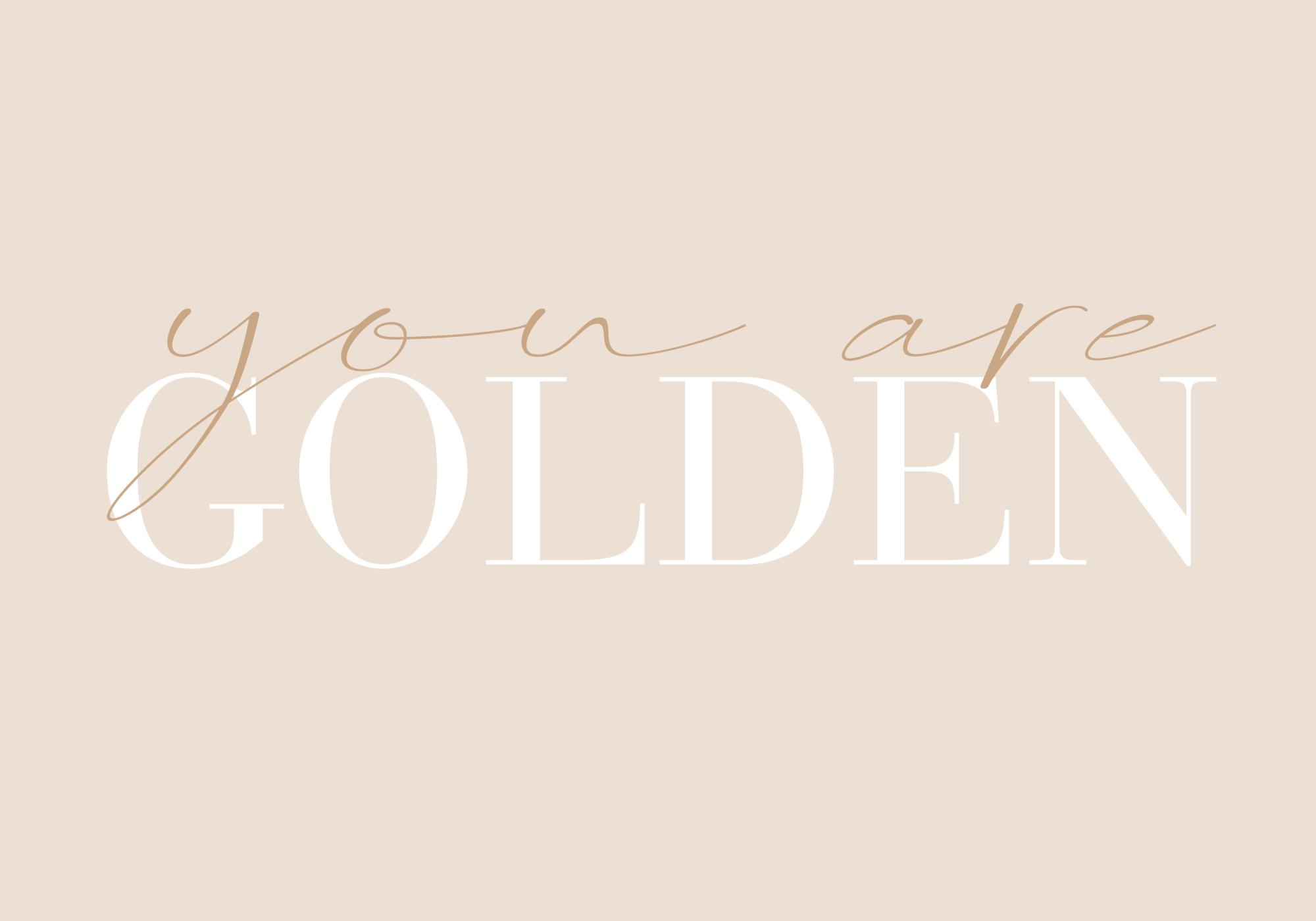 From $5.67Quote print with the text "You are golden" in white and beige in landscape format. Serene text poster to add to your gallery wall or on your favourite place in your home to always be reminded about your own worth.